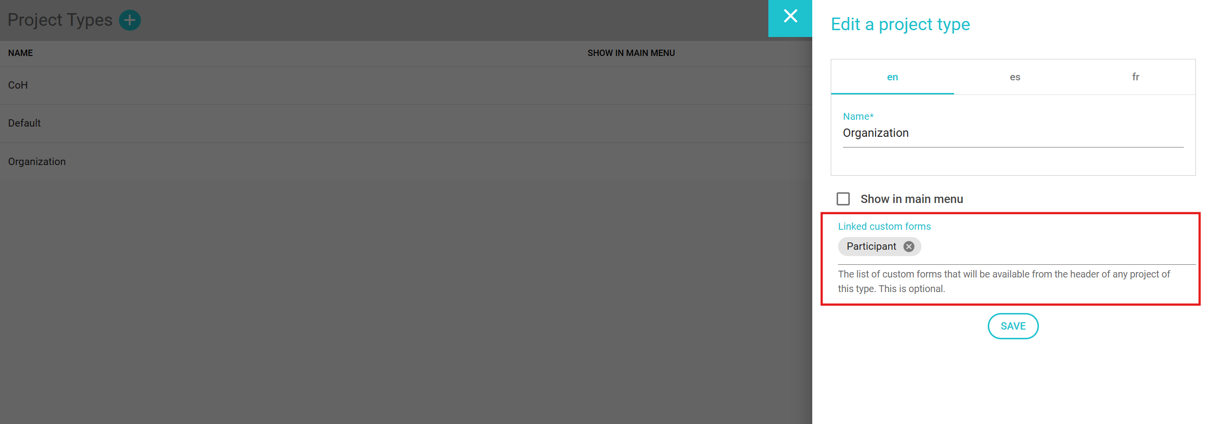 Configurer des types de projets (et les champs pour chaque type)