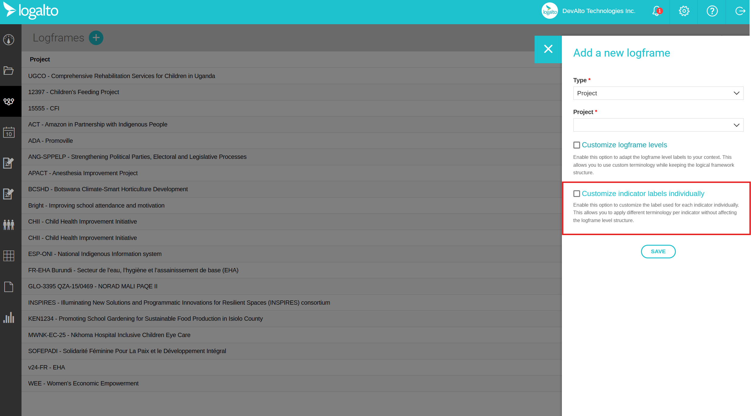 Cette nouvelle fonctionnalité vous permet de renommer les indicateurs, rendant ainsi votre cadre logique plus flexible et mieux aligné avec la structure de votre projet.