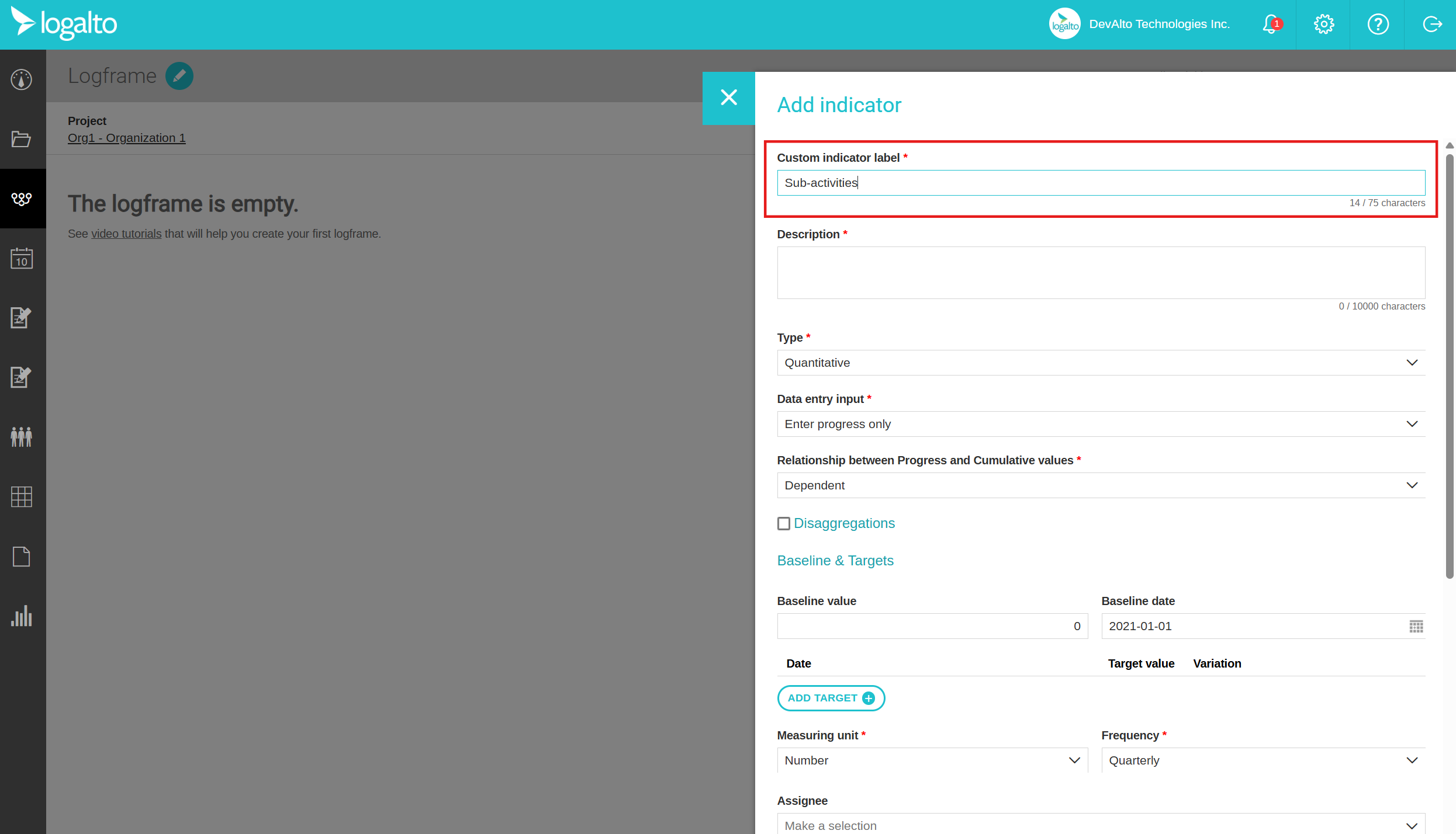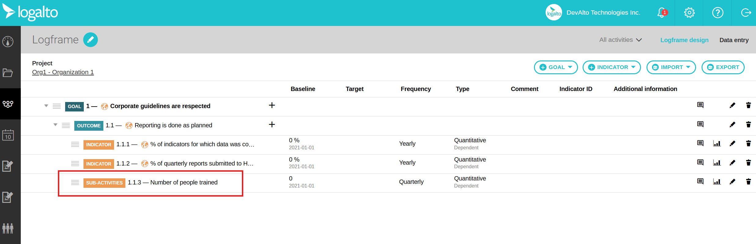 - Par exemple, vous pouvez renommer un indicateur en « Sous-activités » et l’utiliser comme tel dans votre cadre logique.