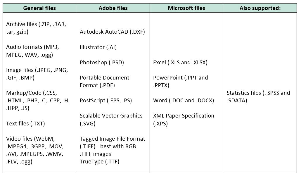 Formats de fichiers pris en charge